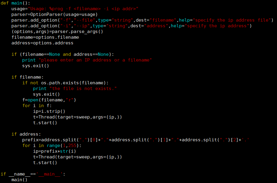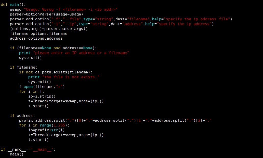 最后将IP地址通过多线程传入sweep()函数完成判断。