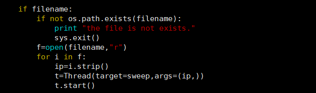 通过for-in语句读取每一行的IP地址,并通过多线程传入sweep()函数进行判断。