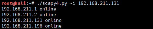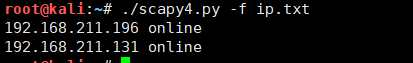 如果响应包flags字段为RST,就判断主机存活,打印“IP online”。