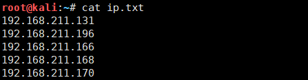 通过-f参数,可以读取本地文件中的IP地址进行扫描。