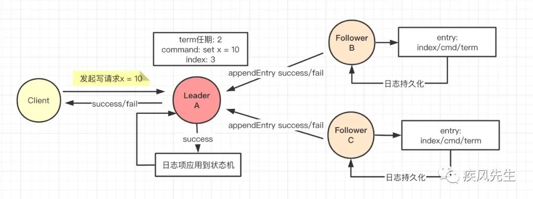 最后,关于Raft算法的日志复制,可以类比数据库的主从复制架构来思考,上述的提交日志可以理解为binlog或者是oplog,那么每次发起的RPC日志复制抑或是心跳检测都会携带日志最大且即将提交的索引值index,通过binlog或者是oplog将数据更新到节点的状态机上.