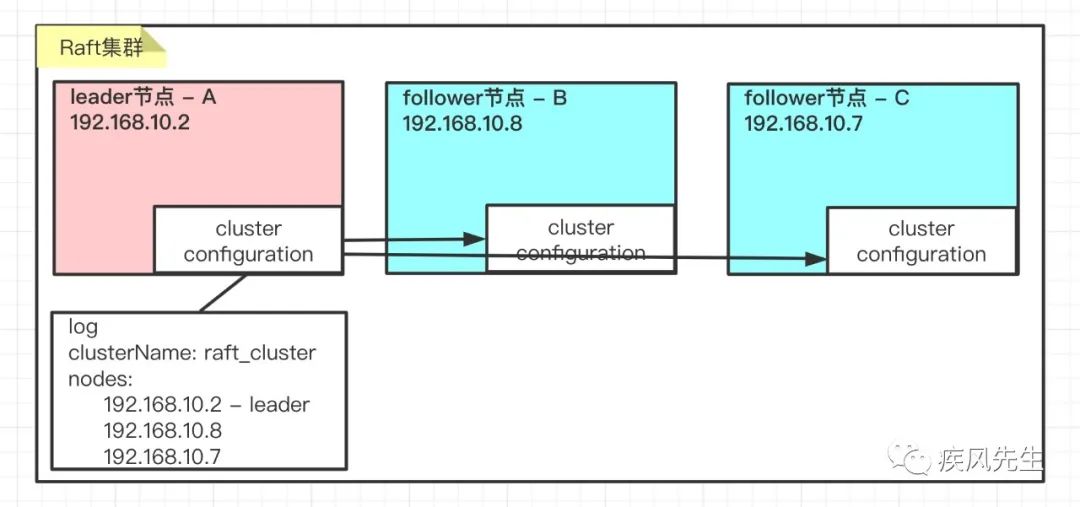 在Raft算法的论文中关于集群成员节点的变更存在着一个集群的配置属性,即在了解单节点变更方式之前,我们需要对集群cluster的配置有一个基本的认知(与ES集群相似)
