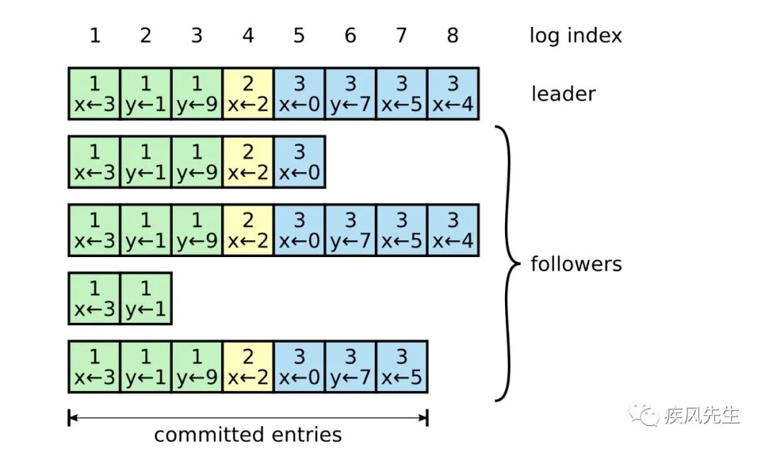 日志索引值(logIndex): 日志项对应的整数索引值,用来标识日志项的,是一个连续的、单调递增的整数号码,并且当前的日志项(logEntry)不会改变其在日志(log)下的位置