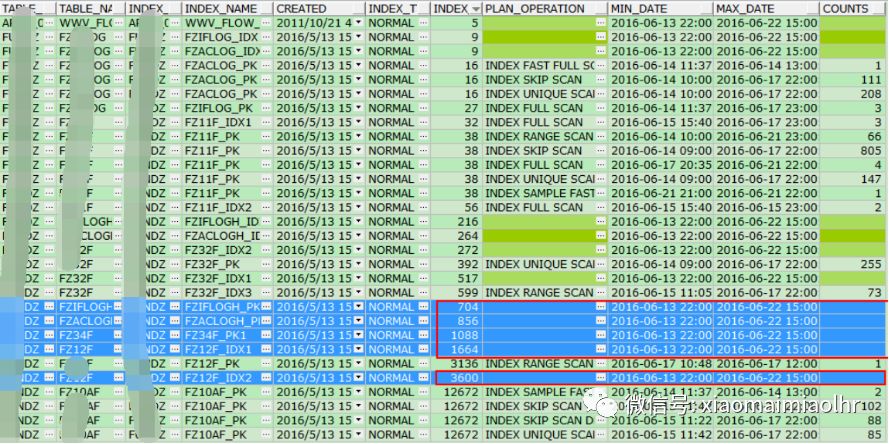 可以从视图DBA_HIST_SQL_PLAN中获取到数据库中所有索引的扫描次数情况,然后根据扫描次数和开发人员沟通是否需要保留索引。
