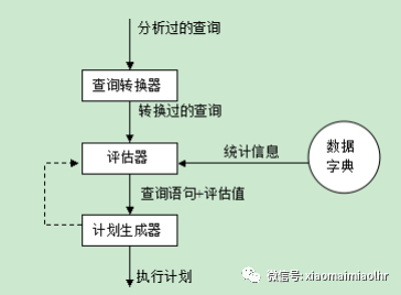 查询转换器的作用是改变查询语句的形式以产生较好的执行计划,主要地转换技术有:视图合并(View Merging)、谓词推进(Predicate Pushing)、非嵌套子查询(Subquery Unnesting)和物化视图的查询重写(Query Rewrite with Materialized Views)等。评估器通过计算选择性(Selectivity)、基数(Cardinality)、成本(Cost)这3个值来评估执行计划的总体成本。计划生成器的作用就是生成大量的执行计划,然后选择其中总体成本最低的一个。