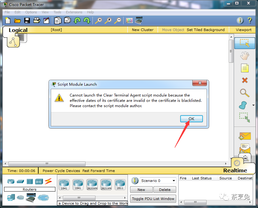 3.打开思科模拟器这个软件弹出的小窗口不用管点击OK即可