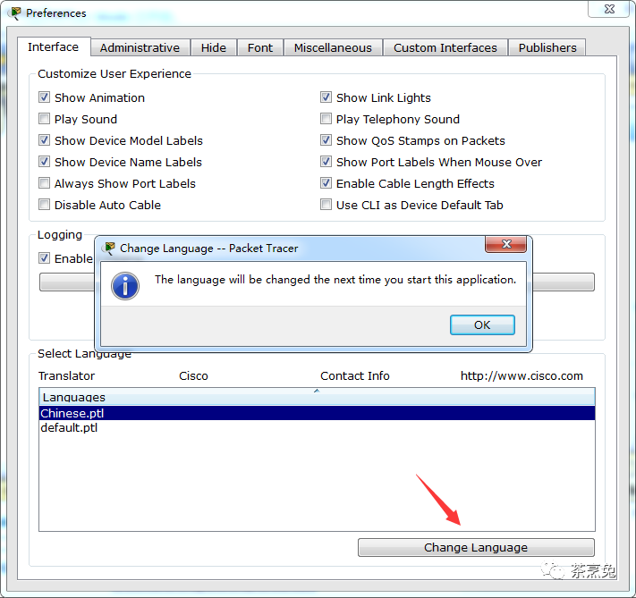 2.找到思科模拟器软件安装路径下的,Languages文件夹,并把语言包粘贴到此目录下