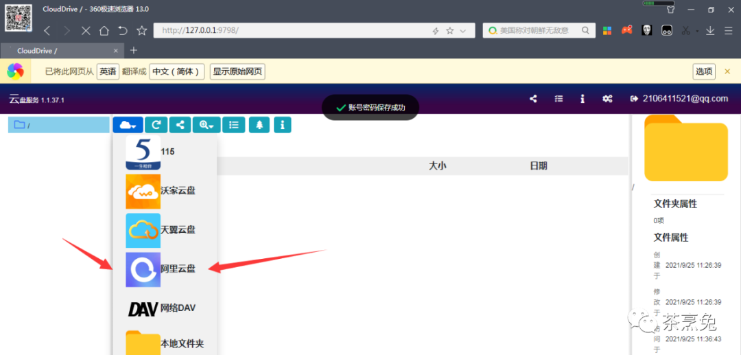 9.成功登录界面之后,这里一定要选择阿里云盘