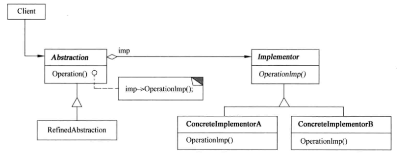 桥接模式(关键单词-abstraction/implementor):将抽象部分与它的实现部分分离,使它们都可以独立地变化。