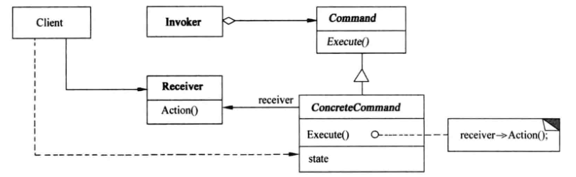 (14)命令模式:将一个请求封装成一个对象,从而使得可以用不同的请求对客户进行参数化,对请求排队或记录请求日志,以及支持可撤销的操作。