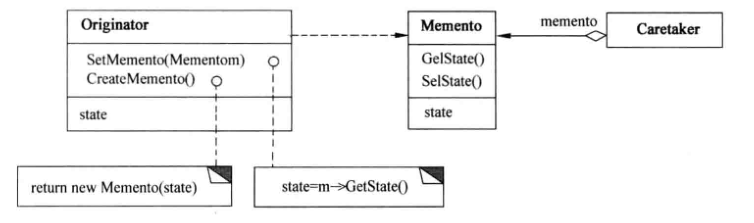 (18)备忘录模式:在不破坏封装性的前提下捕获一个对象的内部状态,并在对象之外保存这个状态。