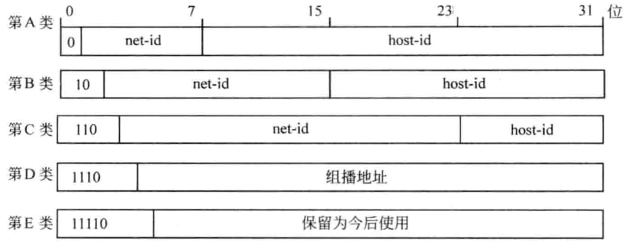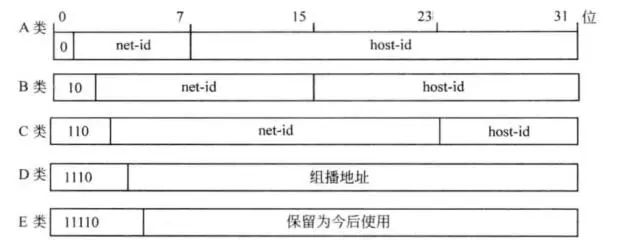 IP地址由网络号与主机号两部分组成,网络号相同的主机可以直接互相访问,网络号不同的主机需通过路由器才可以互相访问。TCP/IP 协议规定,根据网络规模的大小将IP地址分为5类(A、B、C、D、E),如下图所示: