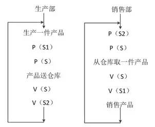 (2)某企业有生产部和销售部,生产部负责生产产品并送入仓库,销售部从仓库取出产品进行销售。假设仓库可存放n件产品,用PV操作实现他们之间的同步过程,如下图所示。其中,信号量S是一个互斥信号量,初值为(1) ;S1是一个(2) ;S2是一个(3)。