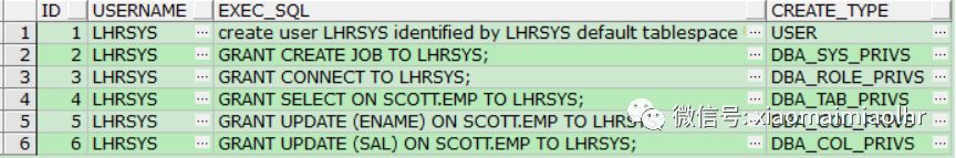可以直接运行EXEC_SQL列来创建用户并赋予相应的权限。另外,可以创建如下的视图: