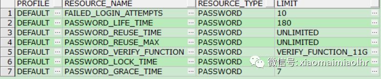 通过如下的命令可以查出与密码相关的PROFILE的值: