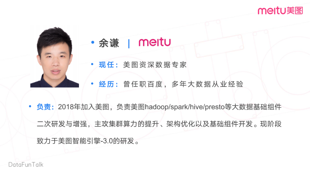 导读:本文的主题是Presto高性能引擎在美图的实践,首先将介绍美图在处理ad-hoc场景下为何选择Presto,其次我们如何通过外部组件对Presto高可用与稳定性的增强。然后介绍在美图业务中如何做到合理与高效的利用集群资源,最后如何利用Presto应用于部分离线计算场景中。使大家了解Presto引擎的优缺点,适合的使用场景,以及在美图的实践经验。