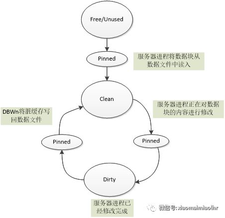 图 3-6 Database Buffer Cache中数据块的状态转变