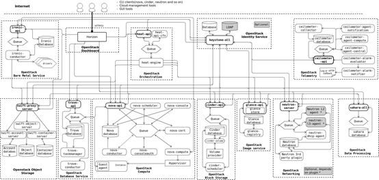 图形界面Horizon,向管理员和用户提供图形化人机界面。