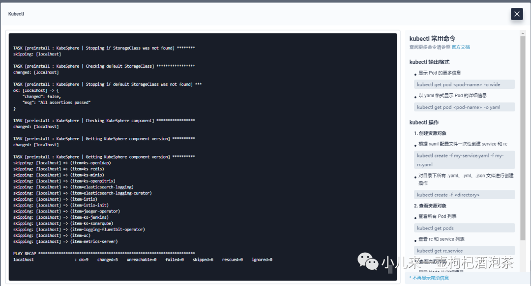 5:使用 Web Kubectl 工具执行以下命令来检查安装过程:
