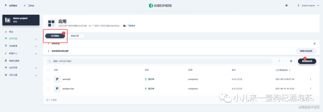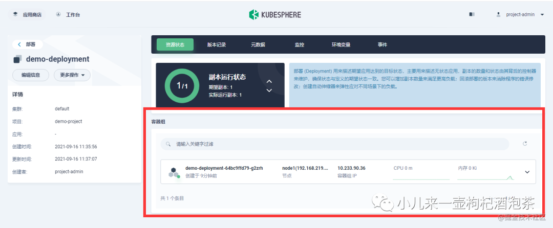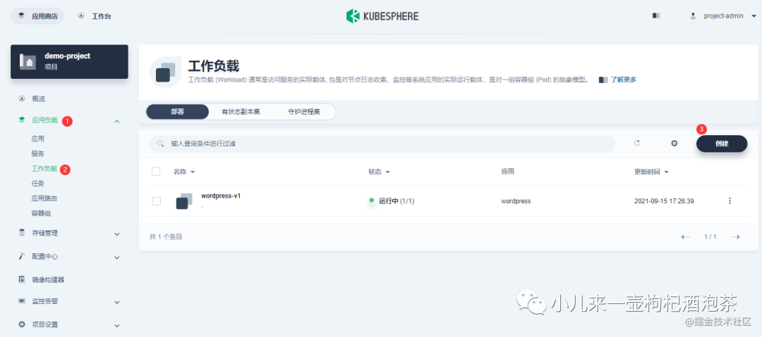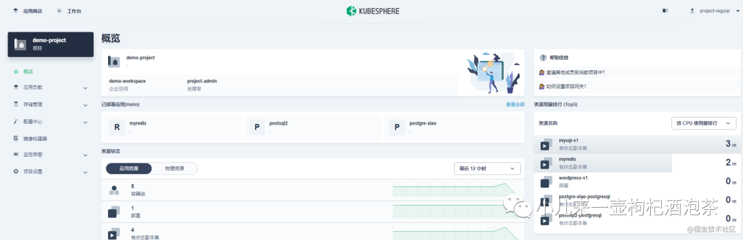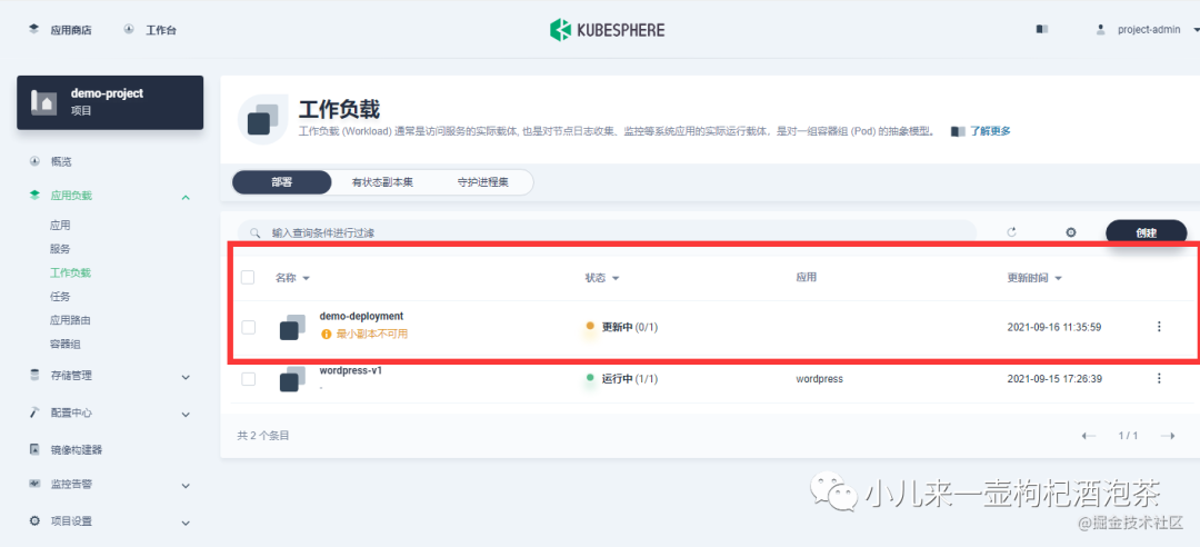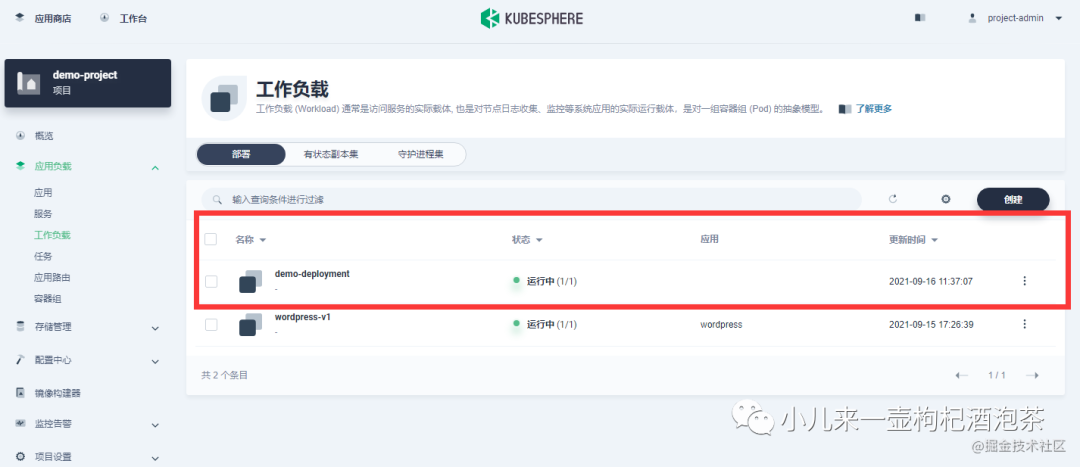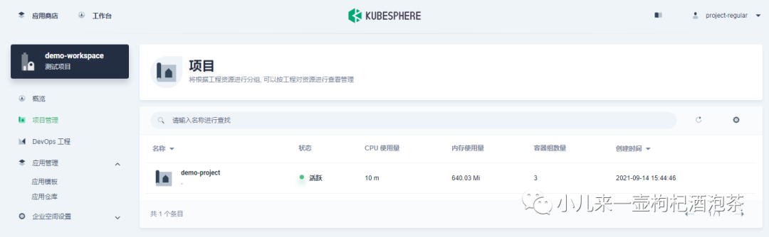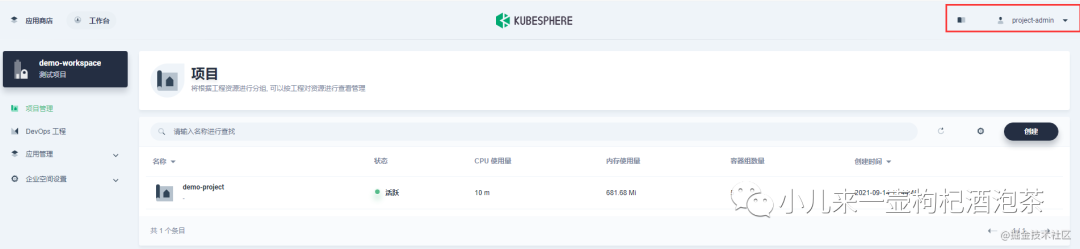 身份登录 KubeSphere 的 Web 控制台,进入项目。