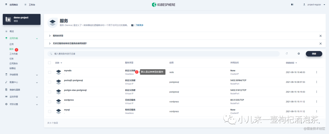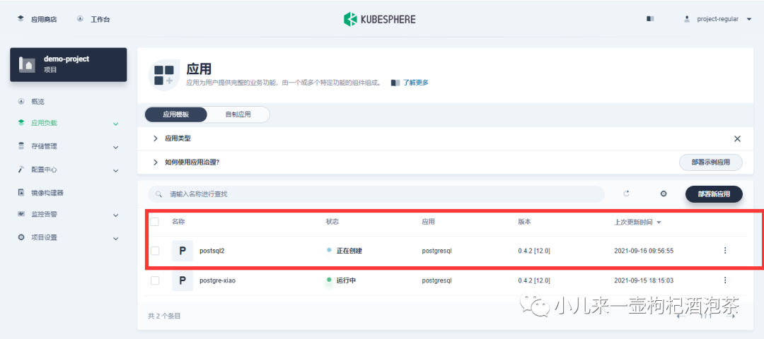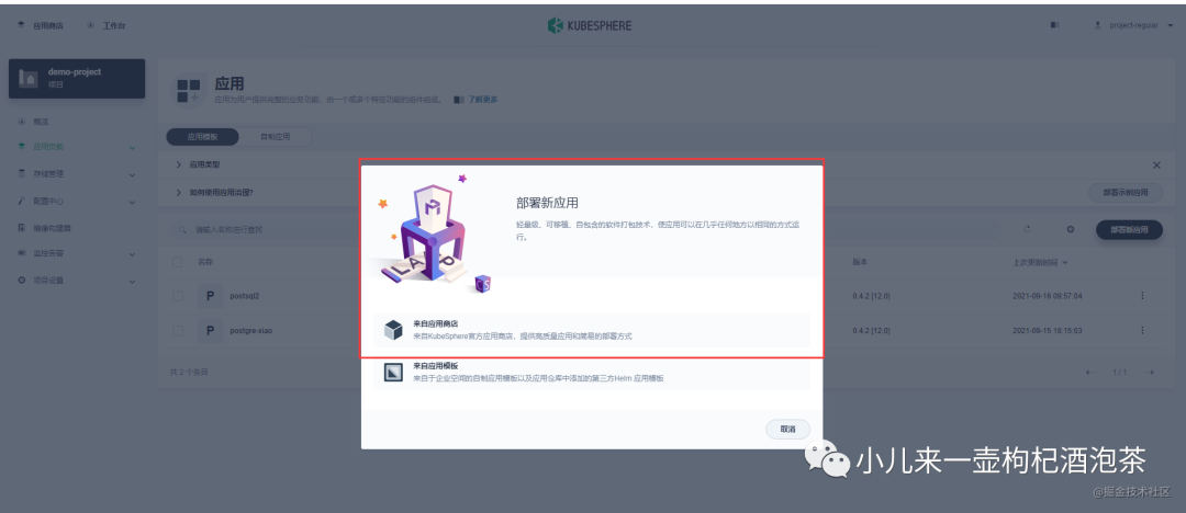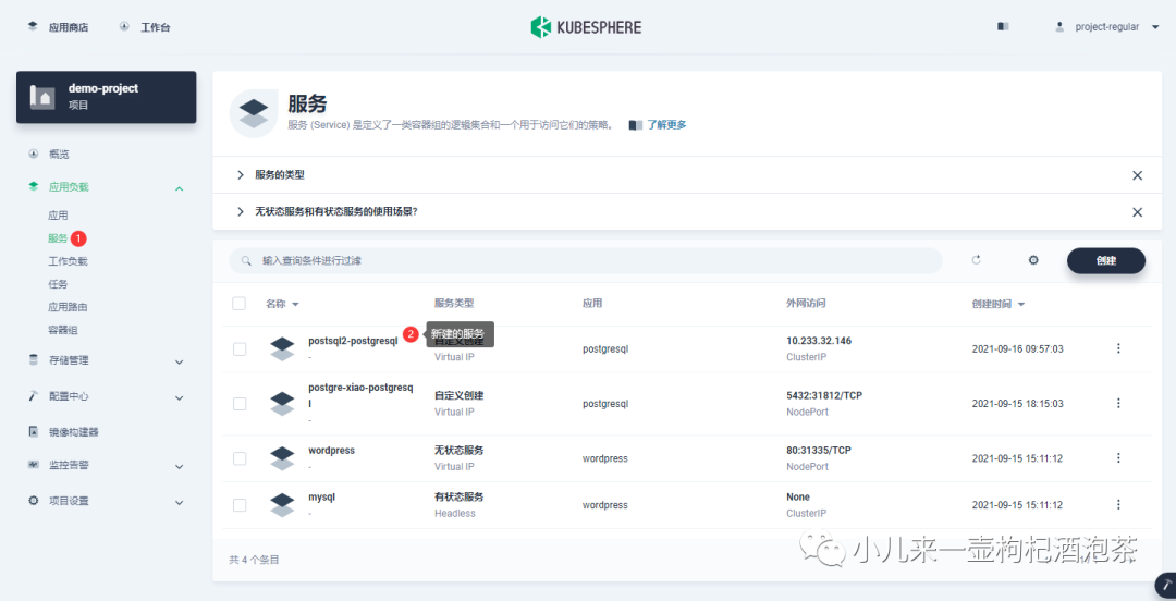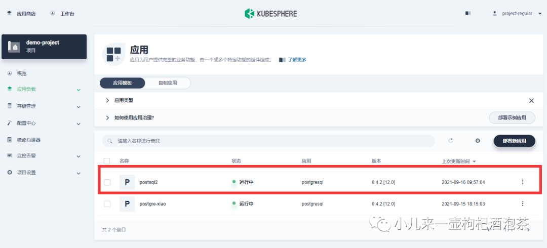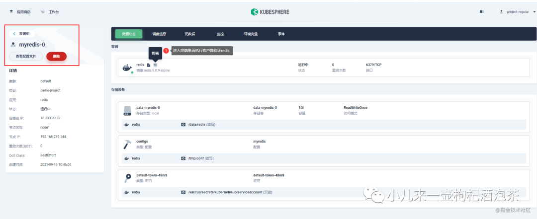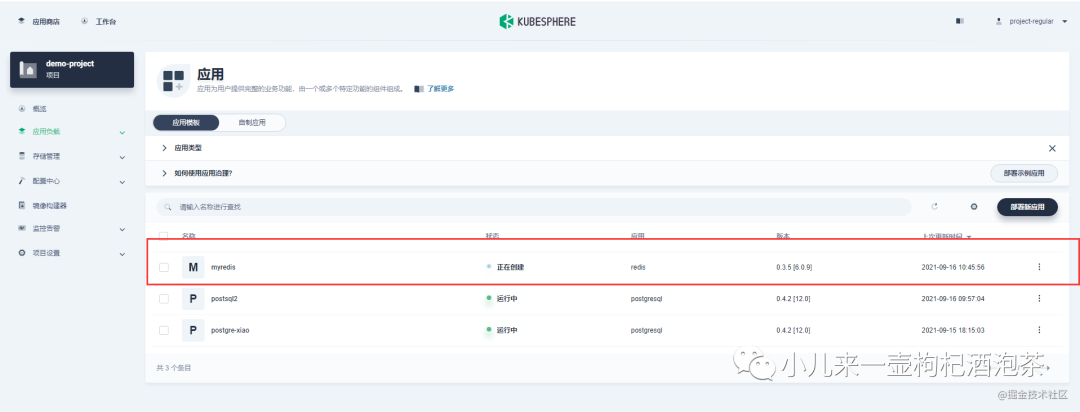 身份登录 KubeSphere 的 Web 控制台,进入项目。