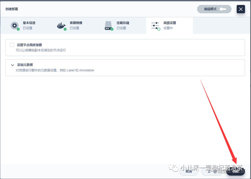 在左侧导航栏中,选择应用负载中的工作负载。在部署选项卡下,点击创建。