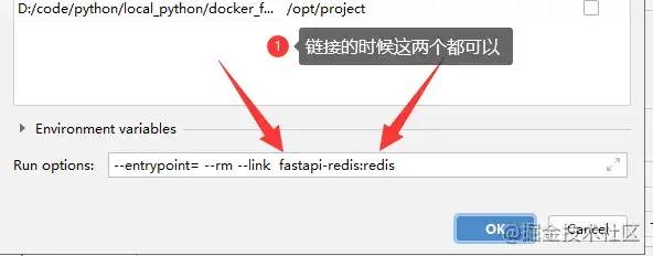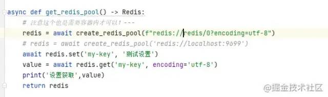 编写链接代码,注意点(服务是运行再我们上面自定容器里面滴有!也就我们的docker搭建的本地的环境):