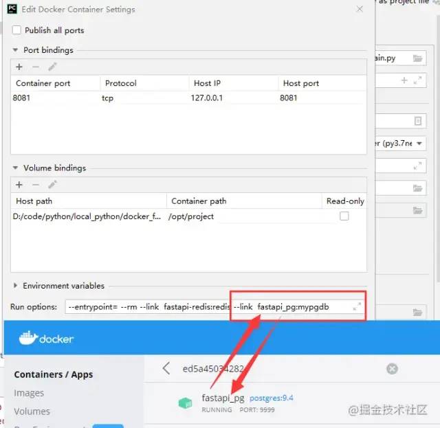 如上面redis容器可以直接通过:mypgdb这名称来找到我们的数据库容器的IP,同理数据库容器也可以通过redis这个名称:来找到redis容器所属的IP。