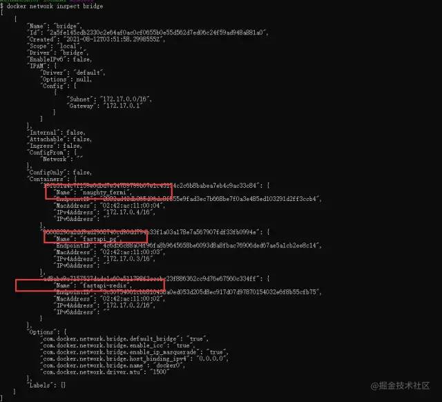 再次的启动docker-compose up后再查看具体的网络的元数据信息: