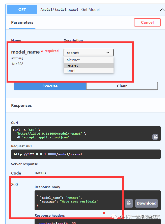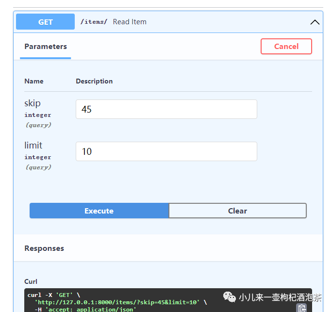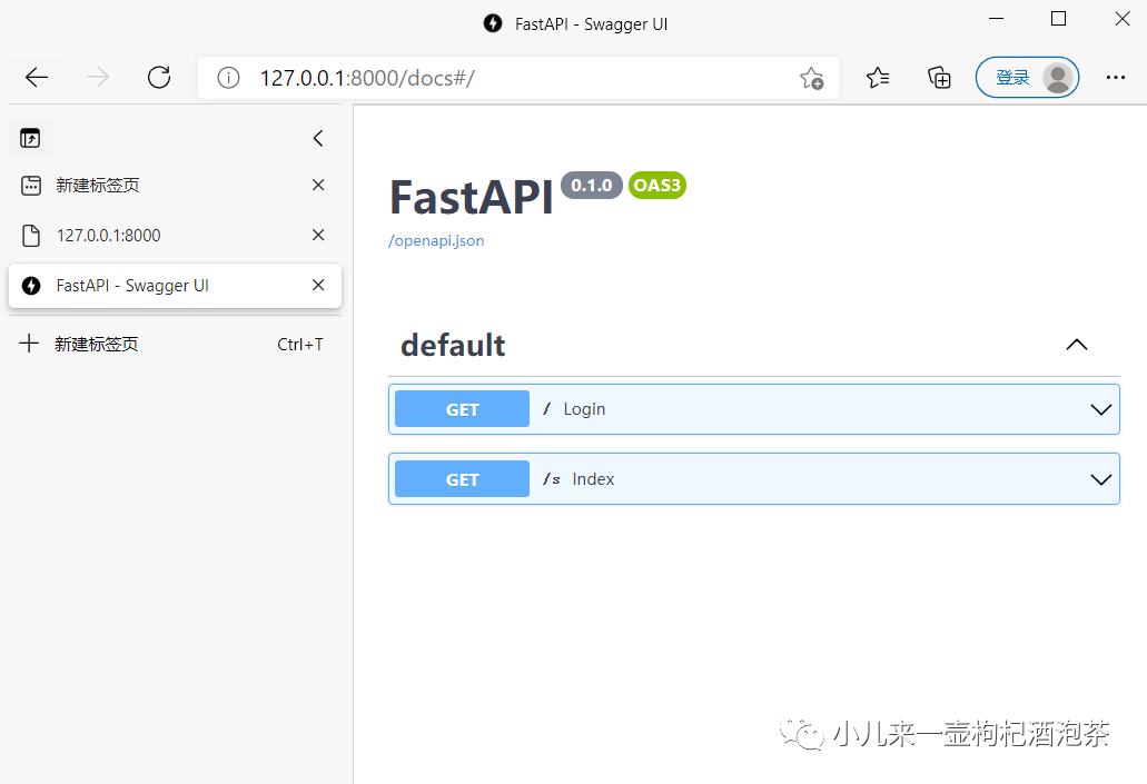 4)打开接口文档:访问默认的地址:http://127.0.0.1:8000/docs#/