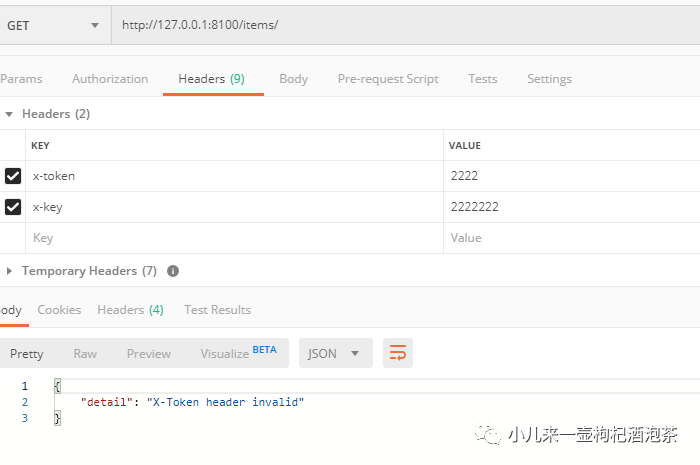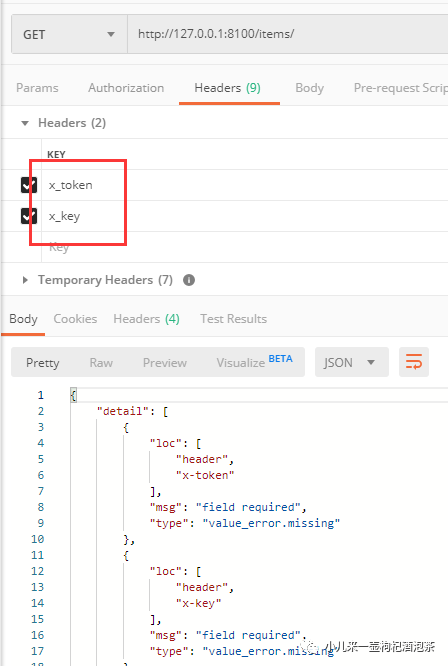 注意点:参数提交的格式,因为是头部的参数,所以我们的代码上的x_token 会应该要写:x-token才对
