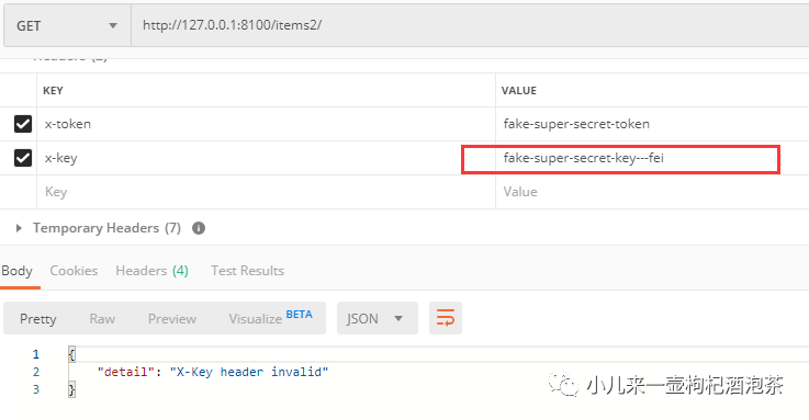 raise HTTPException(status_code=400, detail="X-Key header invalid")