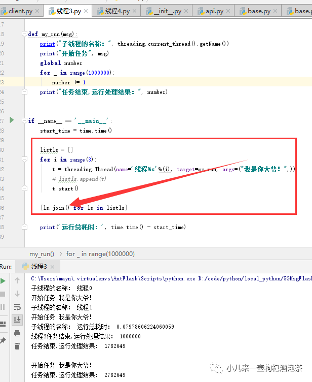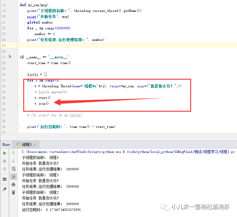 t = threading.Thread(name='线程%s' % (i), target=my_run, args=("我是你大爷!",))