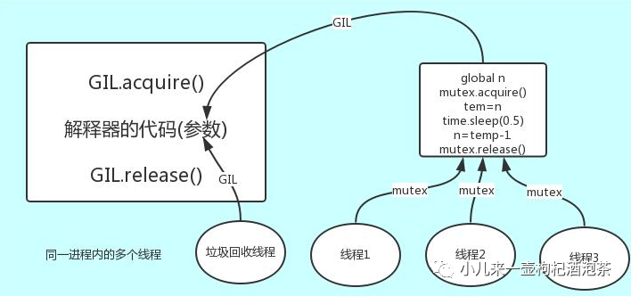 说简单点就是,因为我们的python内存管理机制采用了引用计数的方式来处理垃圾回收,为了相关统计引用,以及方便进行数据管理,相关的Cpython解析器,规定:某个线程的执行,必须先要拿到GIL(全局解释锁)。