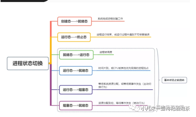 阻塞态----》就绪态 :不是进程自身能控制的,是处于一种被动的行为(即使它有CPU控制权,它也⽆法运⾏)。 运行态----》阻塞态:是进程自身做的出一个行为属于:主动行为 不能直接由 阻塞态----》运行态(因为阻塞态是进程主动请求的,而如果进程还没有运行就无法发出运行的请求) 不能直接由 就绪态----》阻塞态(因为阻塞态是进程主动请求的,而如果进程还没有运行就无法发出运行的请求) 所以如果进程不处于运行态,则无法进行相关主动切换。