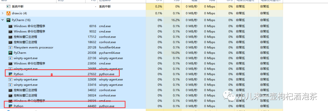此时打开任务管理器(也可以使用命令tasklist查看):