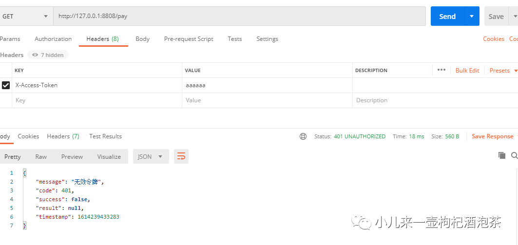 带请求头且传入上次返回的正确Toekn情况: