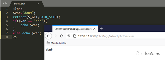 EXTR_SKIP - 如果有冲突,不覆盖已有的变量。
