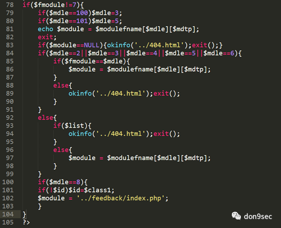 当fmodule不等于7时,满足条件,$module会被初始化(/include/module.php 78行);当fmodule等于7时,module就不会被初始化,且module又是可控的,此时便可以通过
