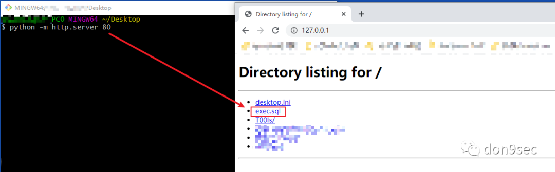 将payload exec.sql 放置web服务目录下(这里使用python3 起一个httpserver)