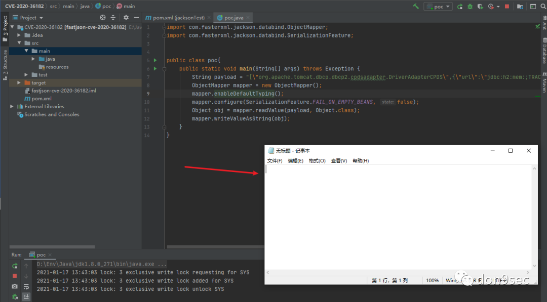 执行poc.java,成功弹出记事本notepad.exe(如图):