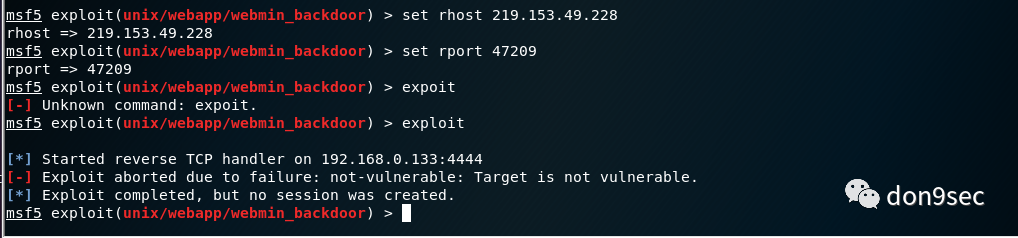 复现失败,估计该环境使用的webmin的版本并没有后门。