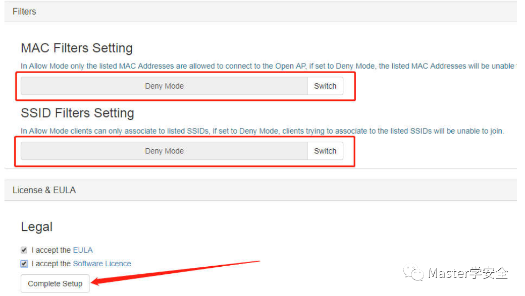 注意:红色框内,必须选择Deny Mode(禁止模式,也就是黑名单模式),否则,初始化后,会无法