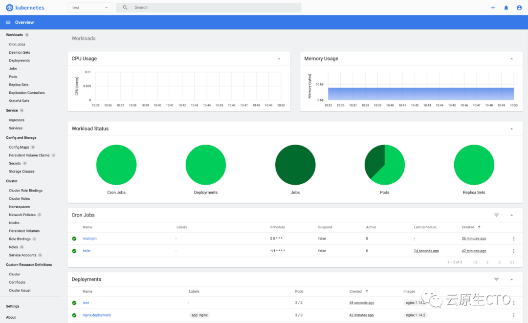 基本上,仪表板提供有关 Kubernetes 集群及其资源的状态以及可能发生的潜在错误的信息。