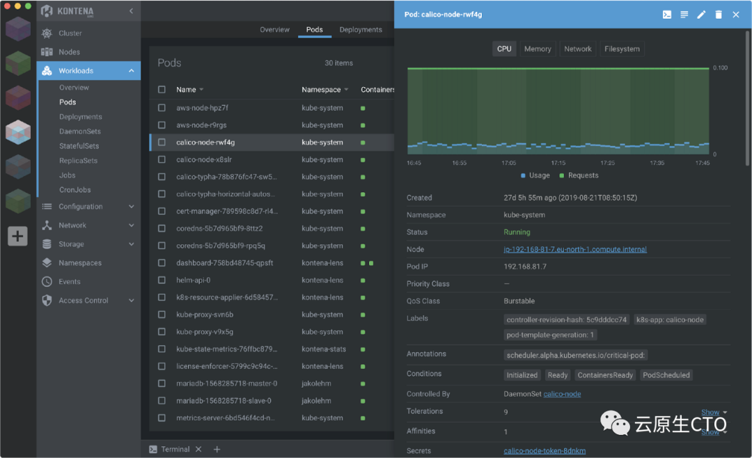 可以替换 Kubectl,因为 Lens 能够处理集群设置并运行任何 Kubectl 命令。