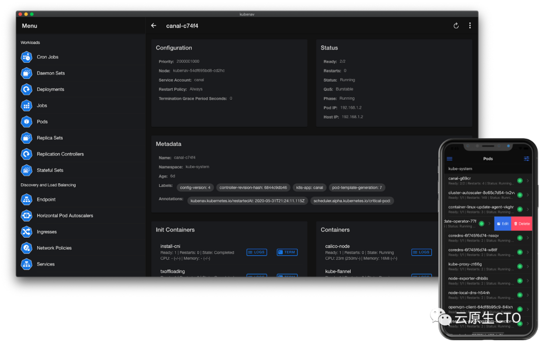 Kubenav 是一种移动(可能是今天唯一的)、桌面和 Web 应用程序,用于管理 Kubernetes 集群并获取资源状态概览。