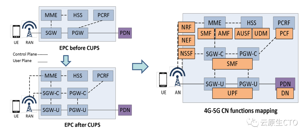 「CUPS:控制和用户平面分离 SGW:服务网关」