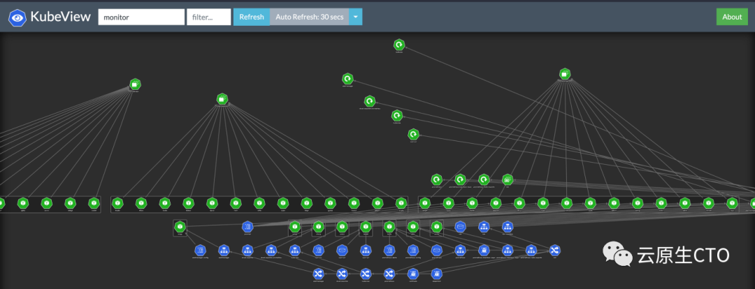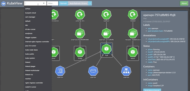 Kubeview 是一个简单的 Web 界面,它提供了跨命名空间的 Kubernetes 对象的完整概述,以及它们如何通过直观的 UI 和资源对象相互连接。